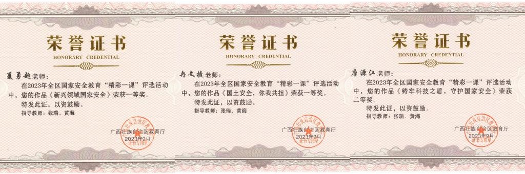 Beat365官网在全区2023年国家安全教育“精彩一课”征集和评选活动中荣获一等奖2项、二等奖1项