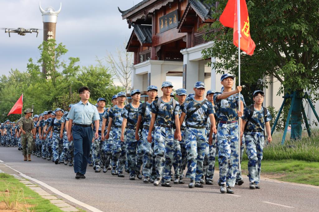 步伐整齐,口号响亮。同学们以自信阳光的面貌和坚毅顽强的决心,踏上了前往军博园的徒步拉练路程。烈日当空,各连队高举旗帜,高喊着口号大步向前,在一步步的前进中磨砺意志,走出广西狼兵的风范。