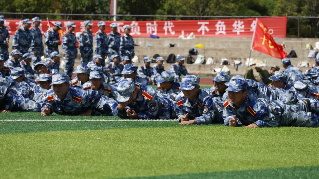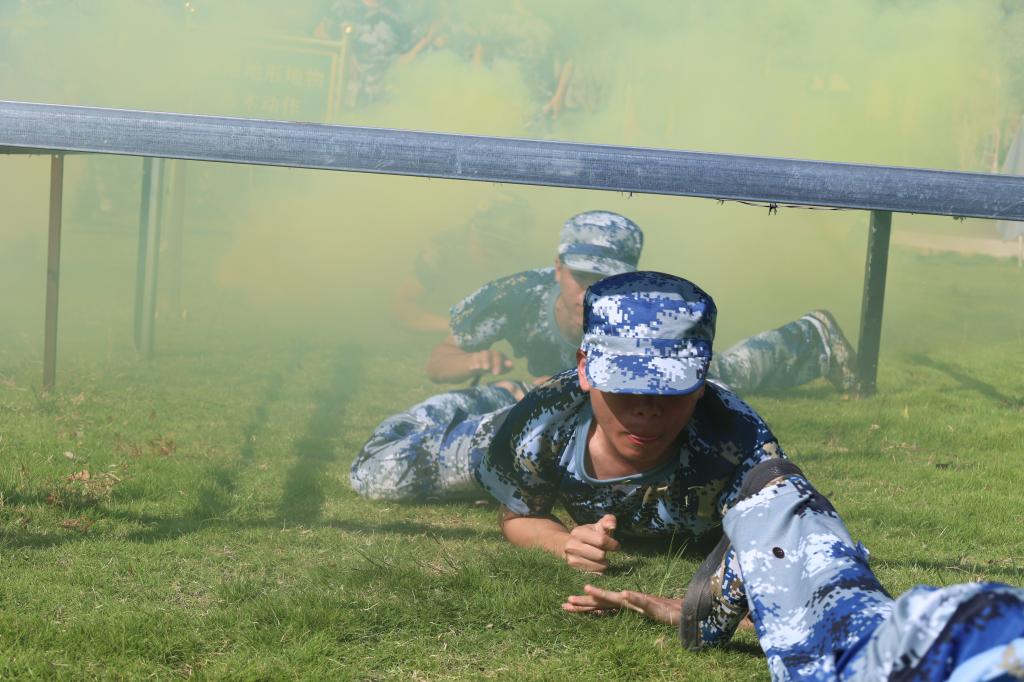 在战场上,局势瞬息万变,危险随时可能出现。低姿匍匐、匍匐前进作为有效降低身体高度、减少暴露面积的关键手段尤为重要。保持匍匐在地的动作并不轻松,面对疲惫,骄阳下的每一个桂工学子给出的答卷都是:标准规范、坚持到底。