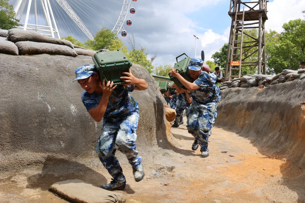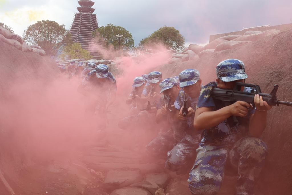 连队来到桂林军博园,参观军史馆、乘坐装甲车,学习各种武器使用,借助军博园的场地进行模拟实战训练,在“沉浸式体验”中尽可能还原真实战场,满足社会对军训的新要求,展现桂工学子的青春朝气。