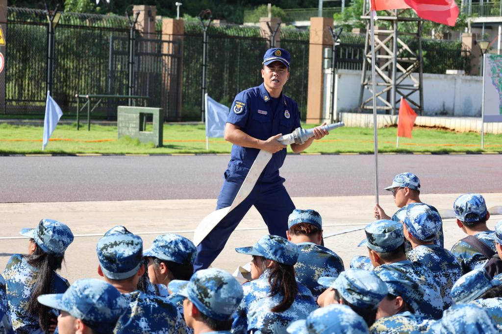 在拉练过程中,同学们还上了一堂身临其境的消防知识课。消防队员为学生们现场讲解演示了怎样使用灭火器,教授了在高楼发生火灾时如何冷静正确应对等一系列实用的专业消防知识。加深了同学们的消防意识,提高了自我救助能力。