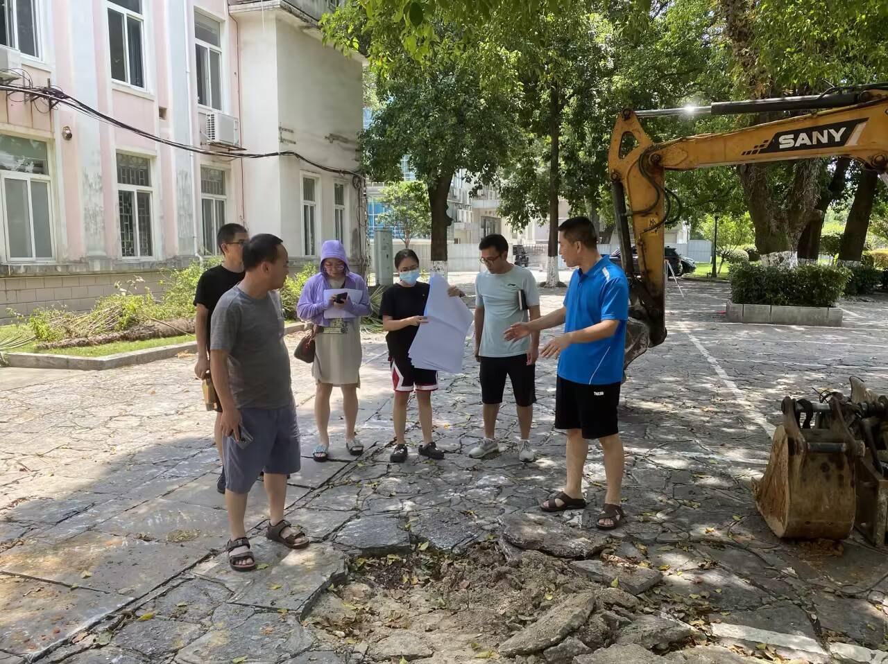 现场讨论办公楼周边道路改造方案