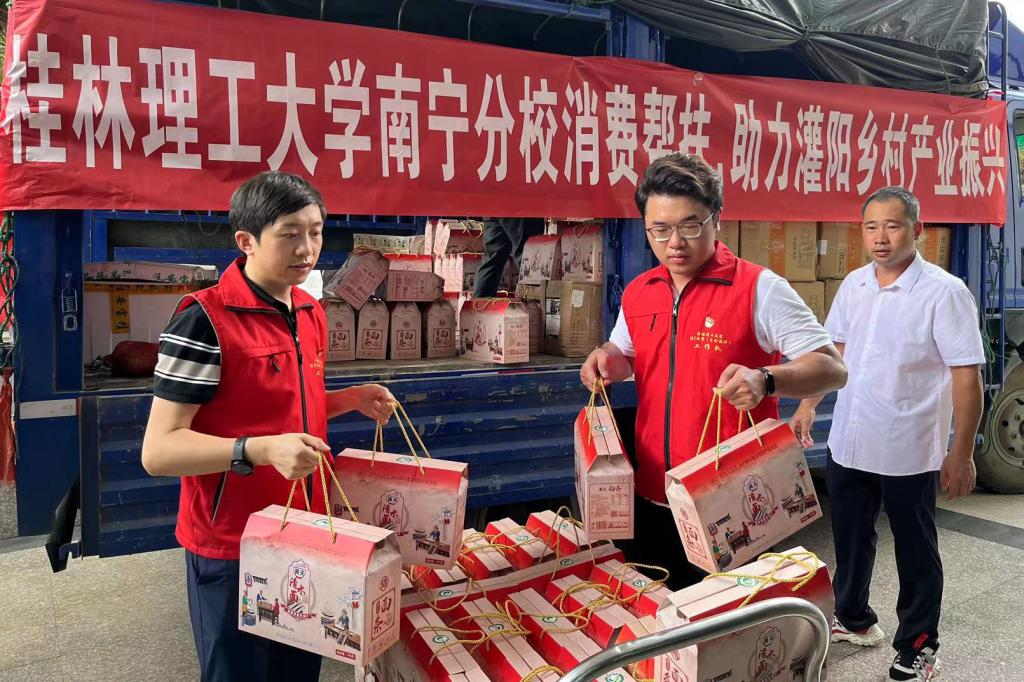 东阳村第一书记朱强、工作队员李春海到南宁分校销售黄关面条