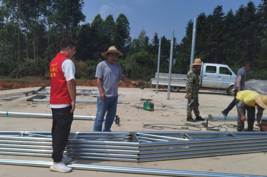 6月14日,三树村第一书记周剑凯与村两委积极推进果园场遮阳棚建设,搭建三树村李子销售平台,进一步规范、优化果农产销环境。