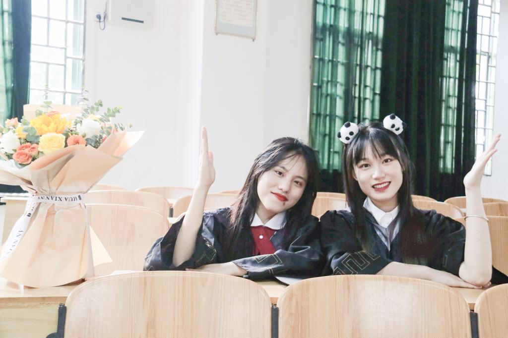 似水流年,转瞬即逝,她们未曾忘记每个在湖边散心的日夜。山有顶峰,湖有彼岸,如今即将抵达岸边的2023届毕业生苏容莹回首四年说道:“祝愿母校愈发辉煌,前事业发展蒸蒸日上。未来我将会更加坚定自己的选择,走好未来的路。也希望学弟学妹们珍惜眼前的机会,勇敢向前。”同时她们也收到了来自外院日语专业20-2班张碧芸同学的祝福:“希望学姐们能保持那一份热情奔赴下一场山海,愿下次见面仍意趣又自在。”