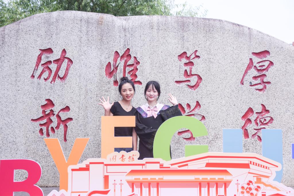 旅游与风景园林学院旅游管理专业2023届毕业生李诗慧、古秋婵:我和校训石合个影