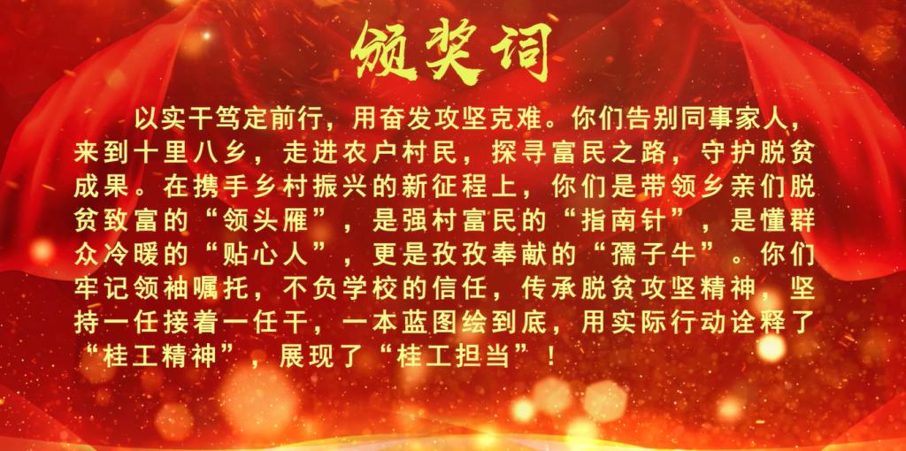 为大力表彰在学习贯彻党的二十大精神,推动学校各项事业加快发展高质量发展中涌现出来的先进集体和先进个人,向过去一年在人才培养、科技创新、社会服务、党的建设等各方面作出突出贡献的事件、团队、人物致敬,学校首次开展“出彩桂工·年度致敬”评选表彰活动。自活动启动以来,受到全校师生的广泛关注和热烈响应,经过推荐、审核和遴选,最终选取了7项年度致敬事件、3个年度致敬团队和8位年度致敬人物。本栏目整理获表彰对象先进事迹及“出彩桂工·年度致敬”组委会给予的颁奖词,陆续推出与大家分享,共同向所有获得表彰的桂工人致敬!为出彩桂工、幸福桂工点赞!