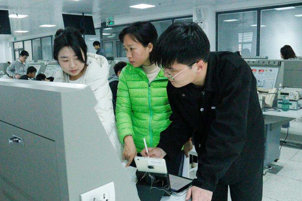 邵欣悦老师和学生在共同学习习近平新时代中国特色社会主义思想