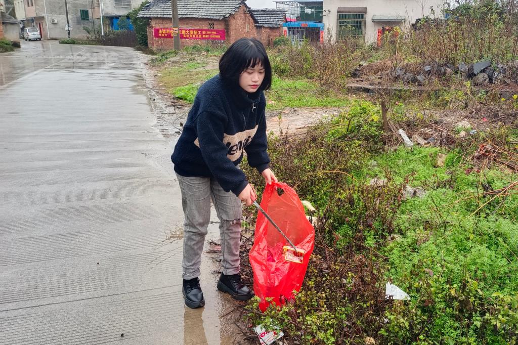 寒假期间,来自旅游与风景园林学院旅游应用专业2021级4班的莫青雯同学回到了自己的家乡桂林市雁山区柘木镇北村,利用假期空闲时间清扫街道,身体力行践行环保理念,为保护家乡生态环境、推进美丽乡村建设作出一份贡献。莫青雯同学利用假期空余时间,认真清扫乡道、捡拾杂草丛中的垃圾,并积极向过往村民宣扬环保的理念。在清扫过程中,莫青雯同学发现乡道上垃圾桶设置过少,于是她积极向村委会反映了此情况,通过自己的努力为乡村环境保护献一份力。她说道,新时代的青年应该用实际行动服务社会与人民,在行动中锻造青春力量、助力乡村振兴。