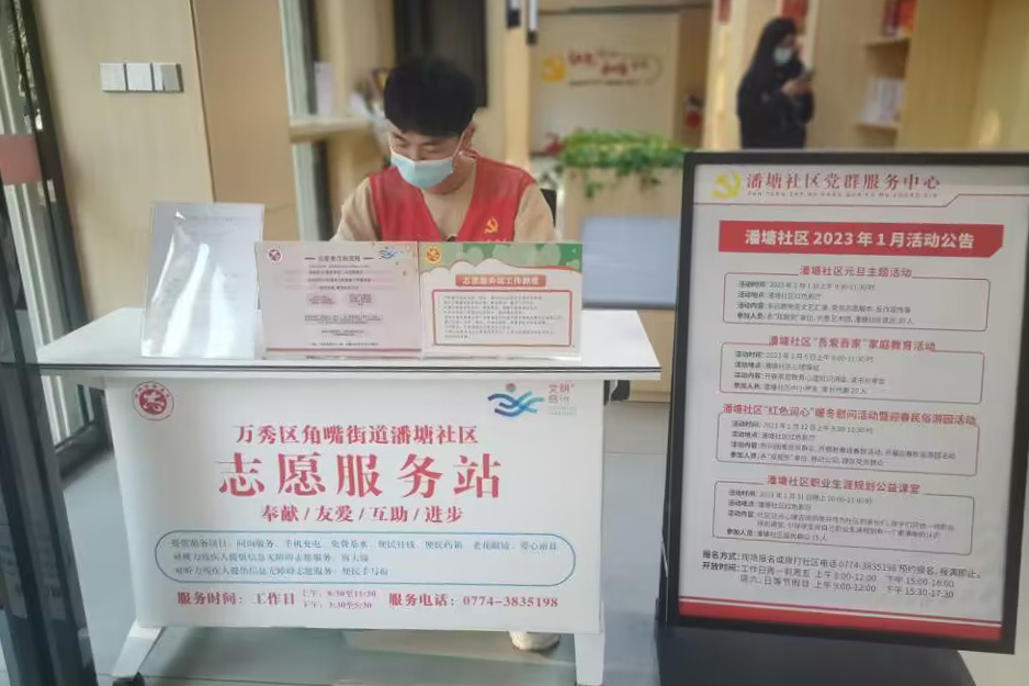 黄炫译同学在社区志愿服务站查阅党的二十大精神理论宣讲资料