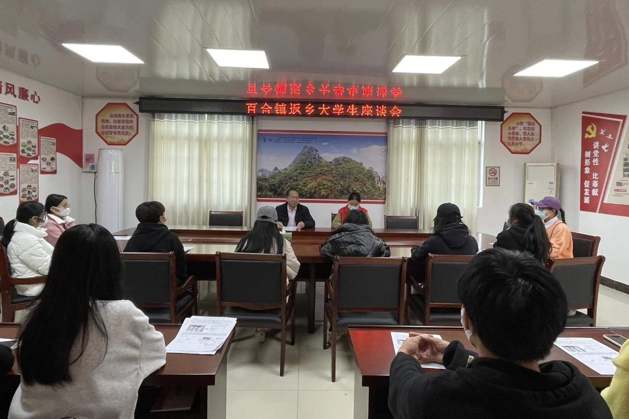 赵茵同学在参加百合镇团委召开返乡大学生座谈会
