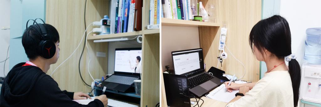 学生认真学习,感受云端温度。“请老师再给我们讲解刚才的公式,还有点不太明白”“老师上课辛苦了”……线上教学不仅仅是上课形式的改变,还涉及到自律、守时等方方面面。“博学而不穷,笃行而不倦”,学生们虽身居寝室,但求知欲望也未曾减退。他们能够快速适应线上教学形式,端正学习态度,课前充分地预习,课上专注听讲,认真记笔记,积极响应任课教师要求并及时完成学习任务。“云端课堂”越过空间与地域的阻隔,成为学生学习主阵地,使师生能够开展“云端对话”,感受云端相聚的温度。