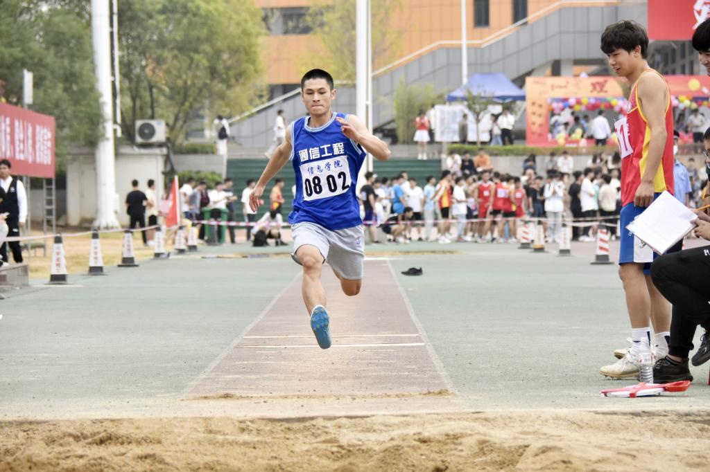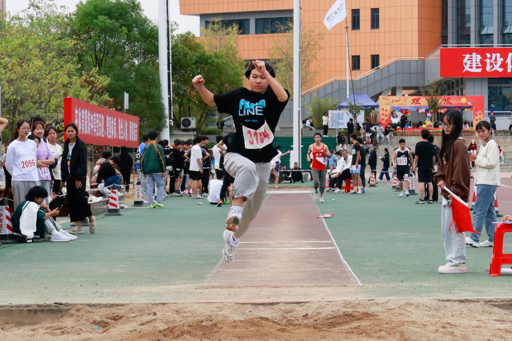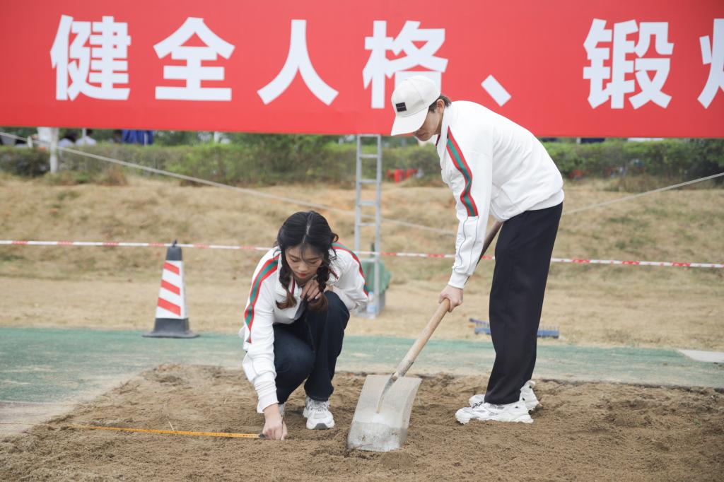 在跳远项目的赛场上,来自艺术学院环境设计21-3班的杨俐怡作为跳远比赛的工作人员,严阵以待,全神贯注于运动员的起跳,以公正为尺,严格保证比赛数据的准确性,运动健儿们成绩的取得离不开每一位裁判员的辛勤付出。