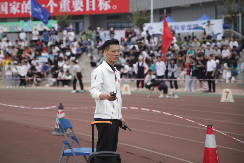 手执对讲机接收比赛进程情况,手握鸣枪器掌握比赛开始的时间,督促好运动员的起跑姿势,监督好比赛的公平公正。比赛工作人员时刻凝神关注现场状况,一声鸣响,从零秒计时,做到精准数据,无误有效,保证了比赛在公平公正的原则下有序进行。