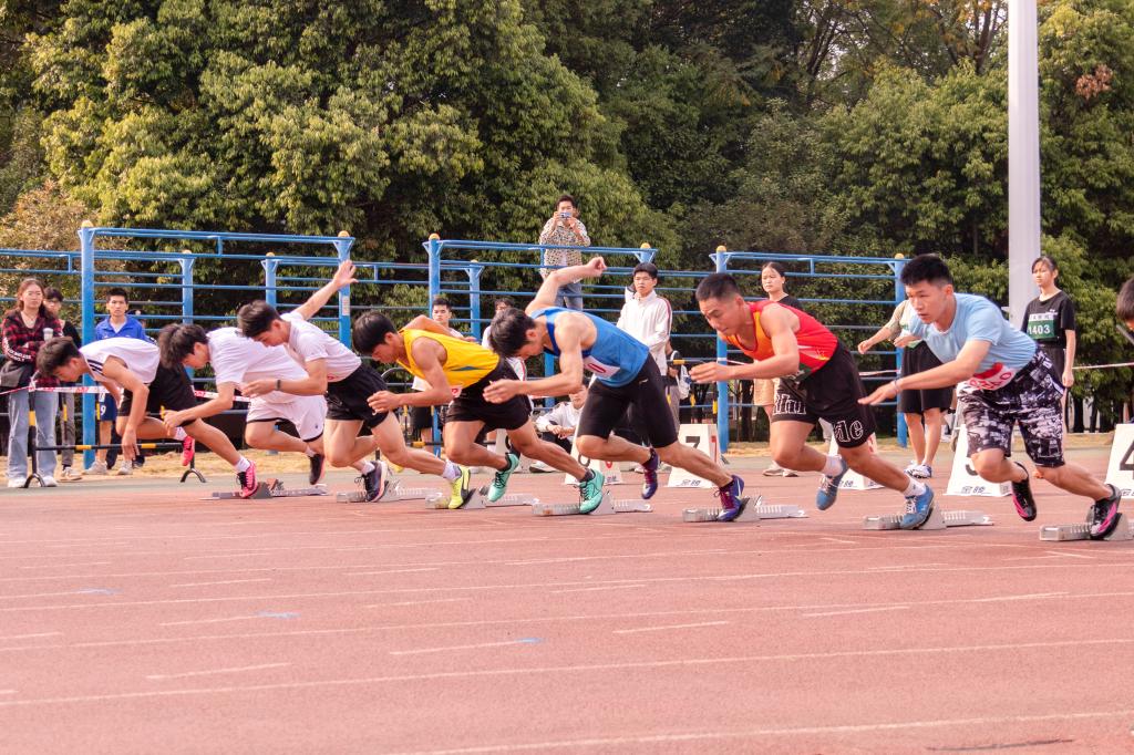径赛场上,比赛如火如荼进行着。随着一声枪响,运动健儿们如脱缰野马般向前飞驰。100米、200米的奋力冲刺,400米、800米的奋力奔跑,运动员们热血迸发、勇往直前,全力以赴的运动精神此刻在他们身上展现得淋漓尽致。