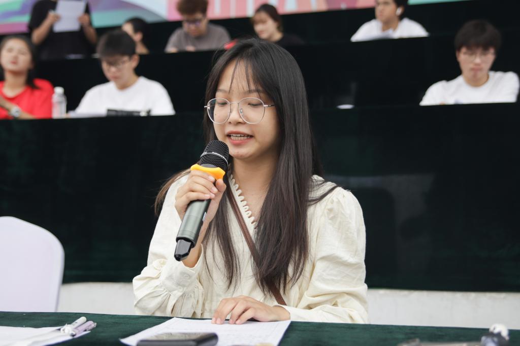 来自公共管理与传媒学院广告21-2班的冯雅雯在本次校运会中担任广播员,校运会期间,她以最好的状态满怀热情地汇报比赛进程,用话筒传递力量,用声音传递激情,带着大家对运动员的加油鼓舞将现场气氛推向高潮。