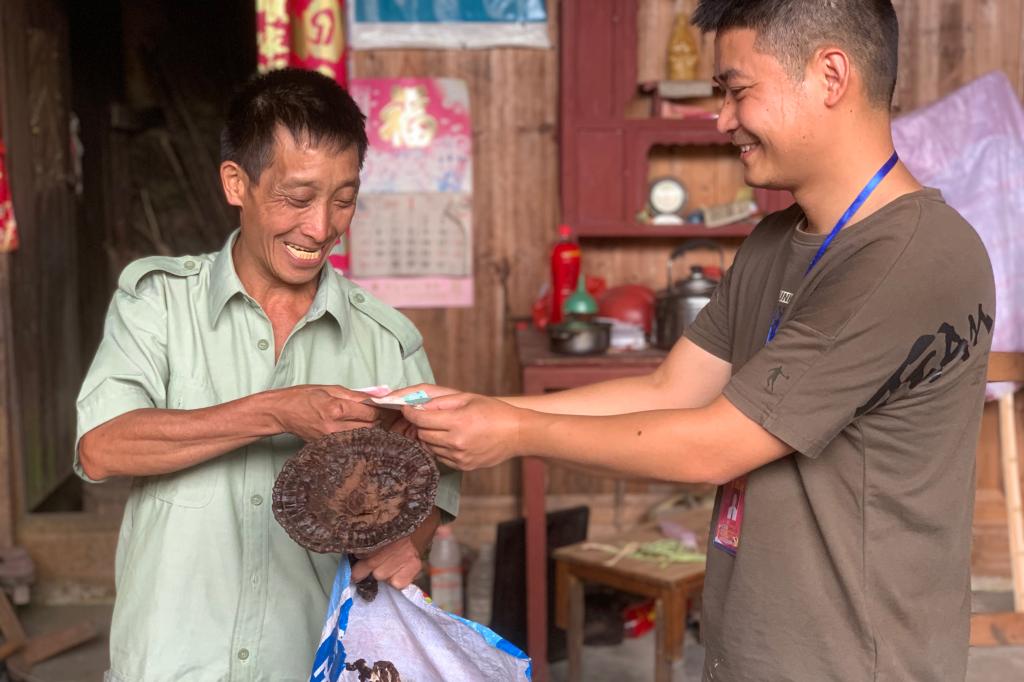 大源村第一书记黄传伟帮助脱贫户售卖灵芝