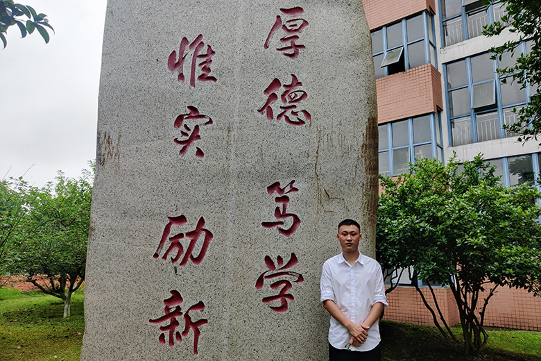 化学与生物工程学院能源专业2022届毕业生王杰:毕业前,我与校训石合个影。