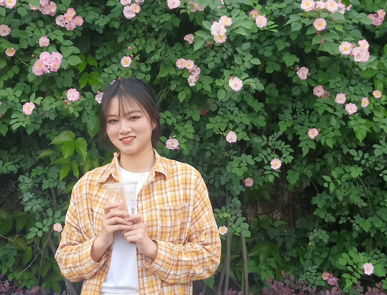地球科学学院宝石及材料工艺学专业2022届毕业生沈佳丹:毕业前,我与学校蔷薇花墙合个影。