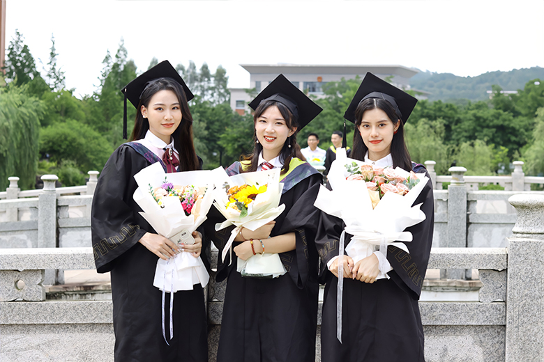 旅游与风景园林学院旅游管理、风景园林专业2022届毕业生符积倩、史焓悦、陈颖:毕业前,我们与鸿雁桥合个影。