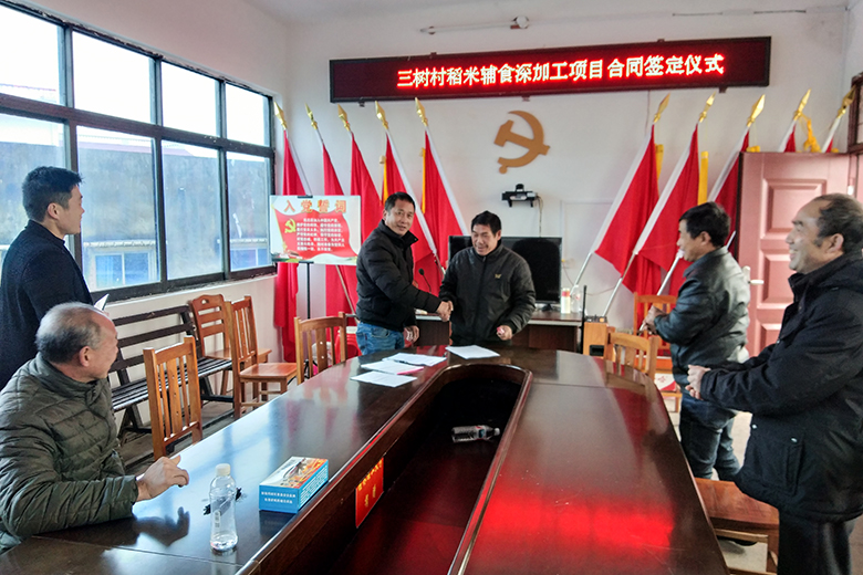 为更好地推动三树村稻米健康辅食深加工项目场地建设,驻村第一书记徐嘉辉协同村两委干部组织面向社会广招建设团队。2月21日,三树村召开稻米辅食深加工项目合同签订仪式,三树村稻米健康辅食深加工项目已经完成平整项目用地,正在建设项目建设用地硬化、管道预埋和搭棚工序。