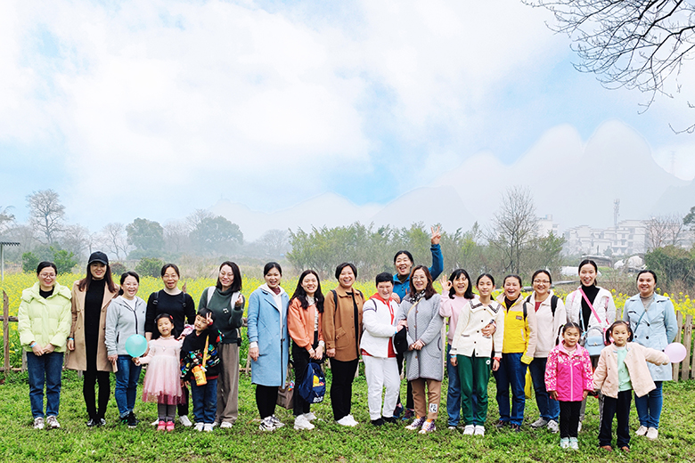 女教师们在油菜花地前合影