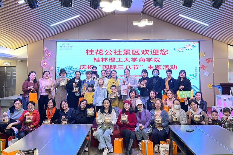 在同一天下午,商学院分工会举办了庆祝“三八”国际妇女节主题活动。在桂花文化主题公园里,大家初步了解了桂花的种植知识,感受桂花文化的芬芳与厚重;接着,大家来到桂花文化体验馆,参观了陈列在桂脉展厅里的万年桂花籽,了解了陈继昌三元及第的故事,并沉浸体验了两万多颗变幻的桂花雨以及2888瓶桂花干组成的金光大道。参观结束后,老师们亲身参与了桂花糕、蛋糕等糕点的制作,在糕点师的指导下,大家发挥无限创意,将自己对美好生活的追求融入到糕点制作中,给自己送上了一份独一无二的节日礼物。