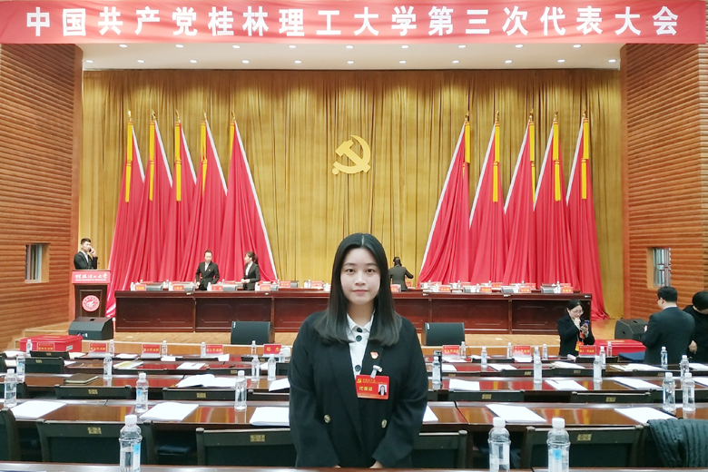 她聊到,在一次主持人大赛中,活动结束后她们在体育馆收拾得很晚,当时那条路上只剩下几个学生骨干,但是她们却很开心,作为部长的她,看着同伴们的背影,觉得一切都很值得。那时候她才真正意识到,其实作为一个学生骨干,所能体现出来的担当,就是在每一件小事里面。大学期间,她为学生代表参加了学校第三次学代会、学校第二次团代会以及学校第三次党代会。她本科专业是社会工作,在提升社会调查研究技能能力方面,她积极参与开展“桂林市低保户入户调查”、“广西居民食品安全满意度调查”以及“桂林旅游区开发市民意见调查”等。