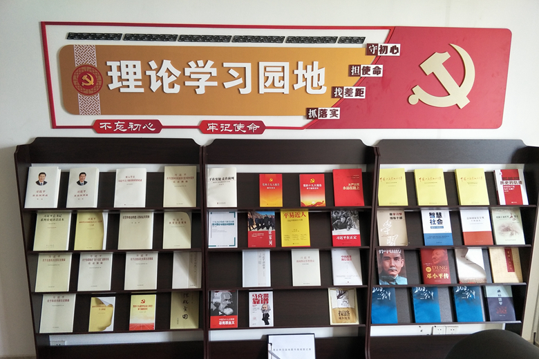 二是建强阵地,利用办公楼走廊打造理论学习园地,并采购上架理论学习书籍,营造时时、处处学习的氛围。