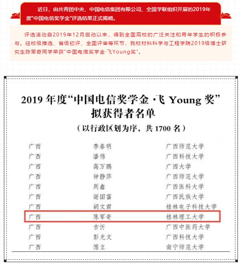 支部党员获得2019年度“中国电信奖学金,飞young奖”