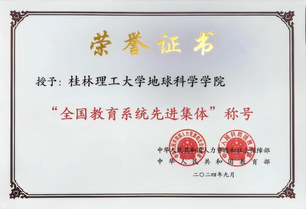 学校地球科学学院被授予“全国教育系统先进集体”称号