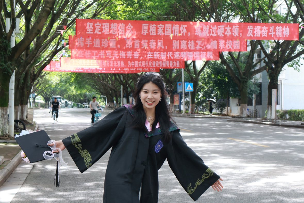 编者按:薪火相传,砥砺奋进;榜样如炬,追光前行。2025届毕业生正以昂扬之姿书写新时代青年的精彩答卷,他们或深耕学术科研,勇攀知识高峰;或投身社会实践,厚植家国情怀;或矢志创新创业,彰显时代担当,用奋斗与汗水铸就了属于桂工学子的荣光。为充分发挥先进典型的示范引领作用,激励广大青年学子见贤思齐、奋发有为,特推出【毕业季·桂工人物】专栏,集中展示2025届优秀毕业生的卓越风采。愿全体桂工学子以榜样为镜,立鸿鹄之志,践笃行之实,在全面建设社会主义现代化国家的新征程中,以青春之我、奋斗之我,谱写无愧于时代的华彩篇章!