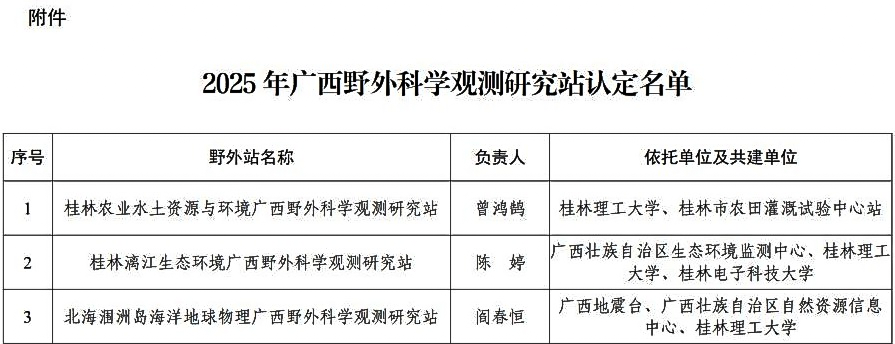 Beat365官网获批认定2025年广西野外科学观测研究站名单
