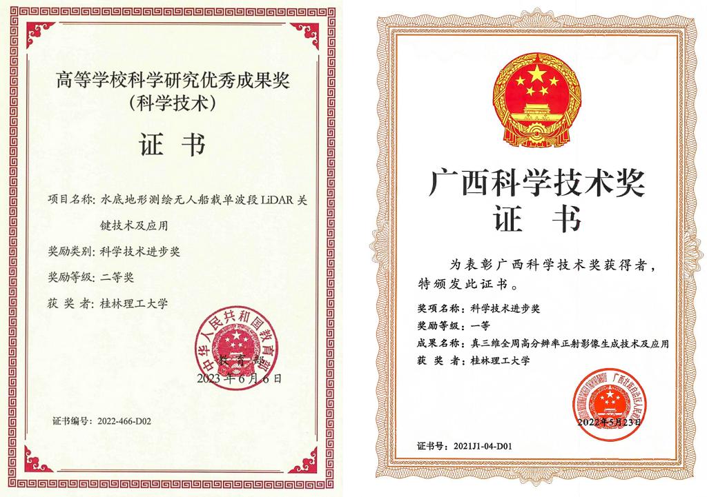 团队主动与区域行业对接,重点围绕水底测绘LiDAR智能装备研发构建产学研用一体化技术研发与成果转化机制。面向国家和社会发展需求开展科技攻关,建设了IEEE GRSS Chapter Guilin、中-挪空间信息技术国际合作中心等国际平台,研制了具有完全自主知识产权的水底测绘LiDAR系列产品,服务于平陆运河近海岸水下地形测绘等重大工程。建成了广西唯一从事激光雷达装备科技成果转化的中试基地,产品销往日韩、东盟等15个国家和地区,为自治区激光雷达遥感产业及相关配套产业高质量发展做出了积极贡献。
