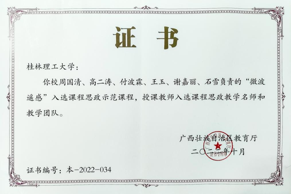 “微波遥感”课程及授课教师入选自治区课程思政示范课程、教学名师和教学团队