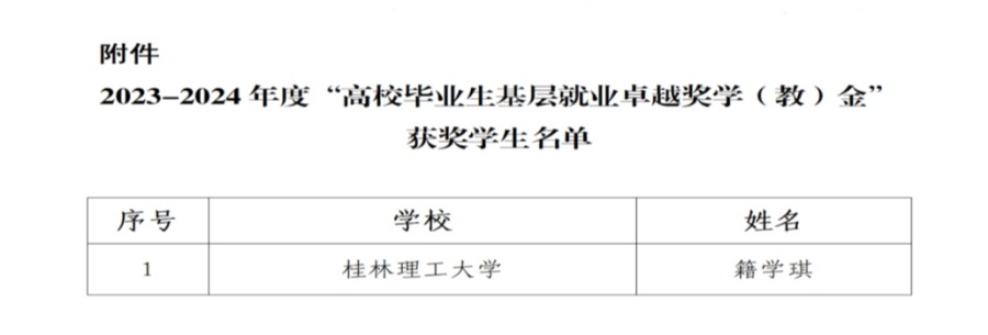 毕业生籍学琪获评“全国高校毕业生基层就业卓越奖学金”