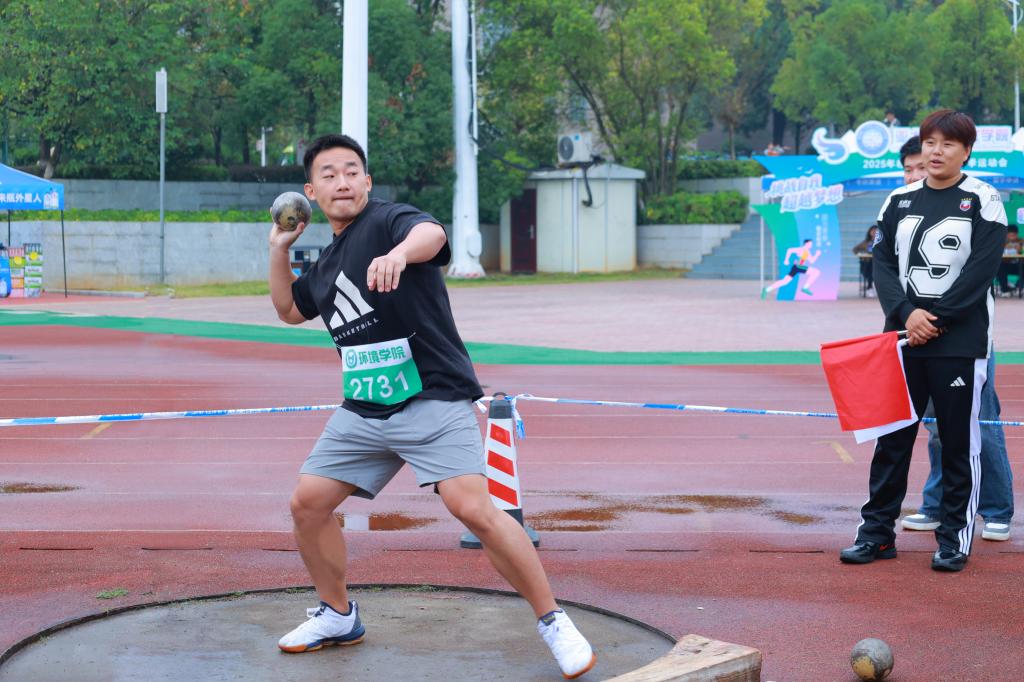 耳边的破风声里,藏着铅球运动员无数个日夜的打磨。握球、举过肩头、奋力掷出,三个动作浓缩了千万次的重复与精进。当铅球脱离手掌,它承载的不只是重量,更是运动员对卓越的执着;落地时扬起的尘土,恰似桂工学子脚踏实地、追求极致的精神注脚,让力与美的融合在赛场上具象呈现。