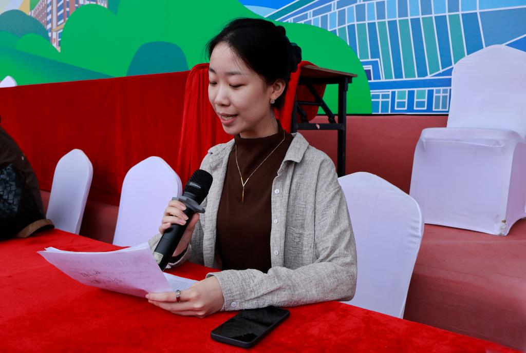 主席台上,艺术学院产品设计24-2班的赵东媛用声音传递力量,每一则赛事播报、每一句加油祝福,都让观众与运动员的心紧紧相连。