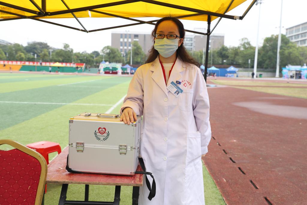 帐篷下,潘昌冰医生的医疗箱始终待命,白衣执甲的守护,为青春热血筑起安全屏障