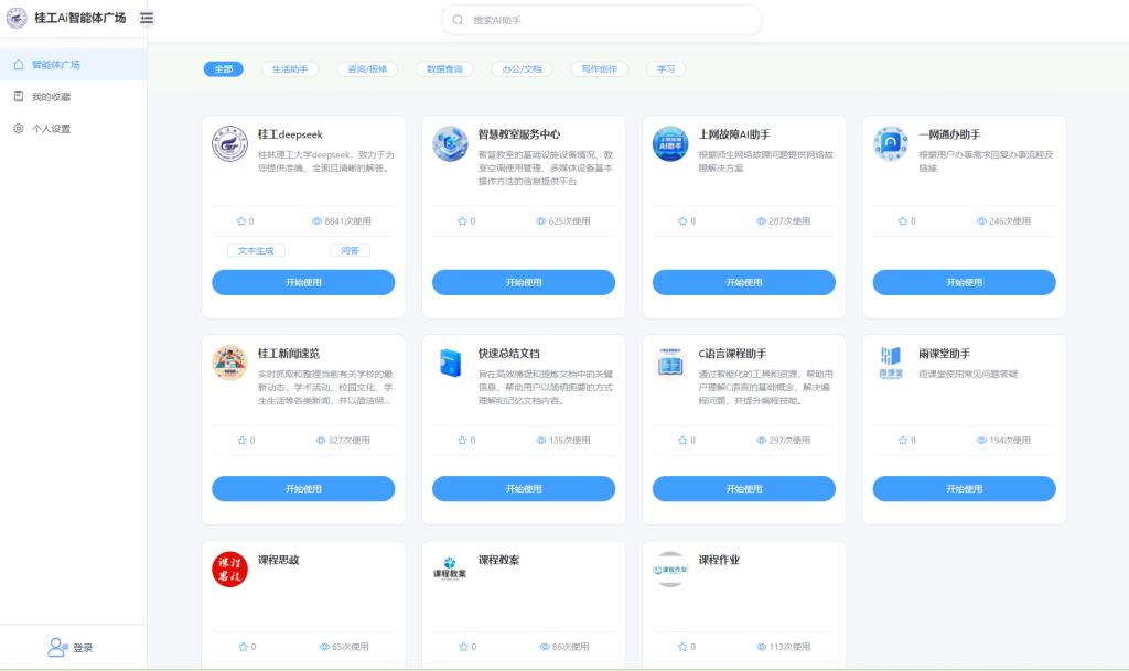 部署智能模型,覆盖管理全场景。学校积极引入前沿人工智能技术,搭建部署了DeepSeek智能体开发平台,并建成智能体广场。目前,已上线11个面向师生的智能体助手,其服务范围覆盖教室服务、上网故障报修、一网通办、文档写作、课程教案等多类校园管理与服务场景,推动校园管理从传统的“经验驱动”向现代化的“数据驱动”深刻转型。