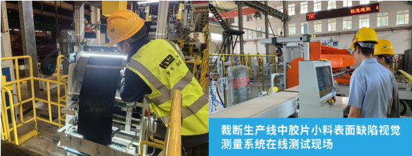 裁断生产线中胶片小料表面缺陷视觉测量系统在线测试现场