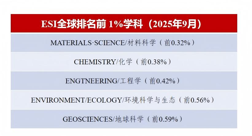 5个学科进入ESI全球排名前1%学科