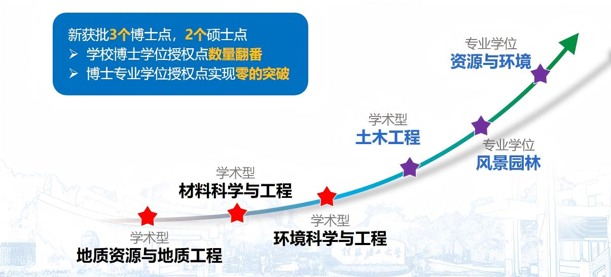 抓住国家学位授权点审核增列、学位授权点动态调整等契机,2024年,全校上下协同发力,获批2个专业学位博士点(资源与环境、风景园林)、1个一级学科博士点(土木工程)、1个专业学位硕士点(能源动力)、1个一级学科硕士点(数学)。学校博士学位授权点数量翻番,实现博士专业学位授权点零的突破。目前已形成6个博士学位授权点、37个硕士学位授权点的学位点建设新格局。