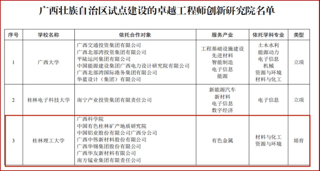 广西试点建设的卓越工程师创新研究院名单