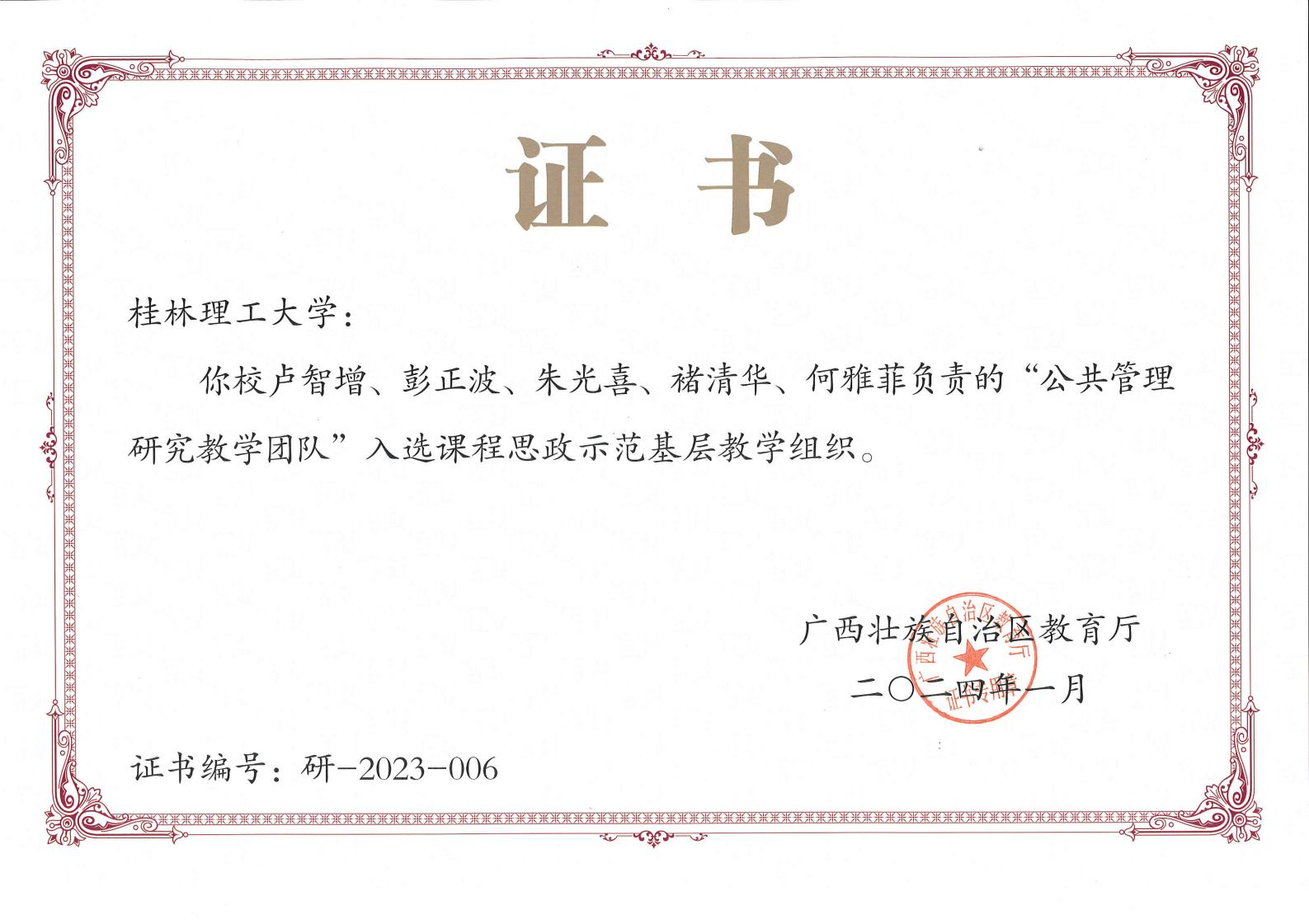 获全区高校课程思政示范课程、教学名师和团队