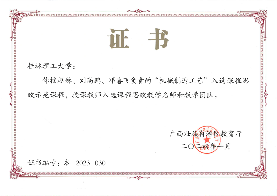 1门课程入选自治区级课程思政示范课程,授课教师团队入选课程思政教学名师和教学团队
