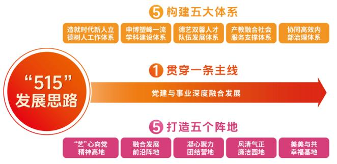 艺术学院党委坚持以习近平新时代中国特色社会主义思想为指导,全面落实立德树人根本任务,认真贯彻学校第三次党代会部署,着力实施党建引领事业发展 “515”战略(以构建完善造就时代新人立德树人工作体系、申博塑峰一流学科建设体系、德艺双馨人才队伍发展体系、产教融合社会服务支撑体系、协同高效内部治理体系等五大体系为路径,以党建与事业融合发展为主线,聚力打造“艺”心向党精神高地、融合发展前沿阵地、凝心聚力团结营地、风清气正廉洁园地、美美与共幸福基地),推动“艺院五地”建设谱写新篇章,学院党委获评为自治区党委教育工委先进基层党组织、Beat365中文官方网站先进基层党组织。