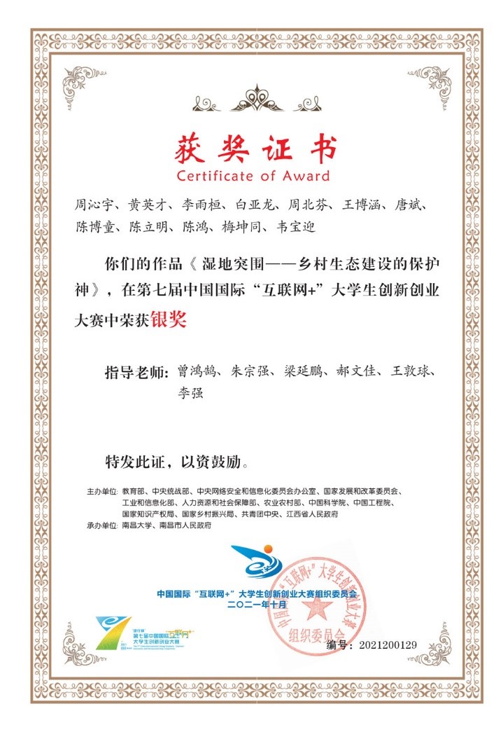 获得第七届中国国际“互联网+”大学生创新创业大赛国赛银奖