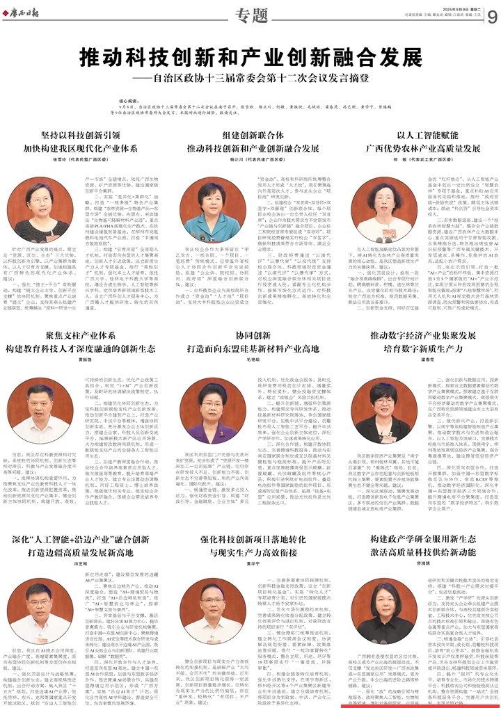自治区政协常委、学院院长曾鸿鹄教授在自治区政协十三届常委会第六次会议上的发言获《广西日报》刊登