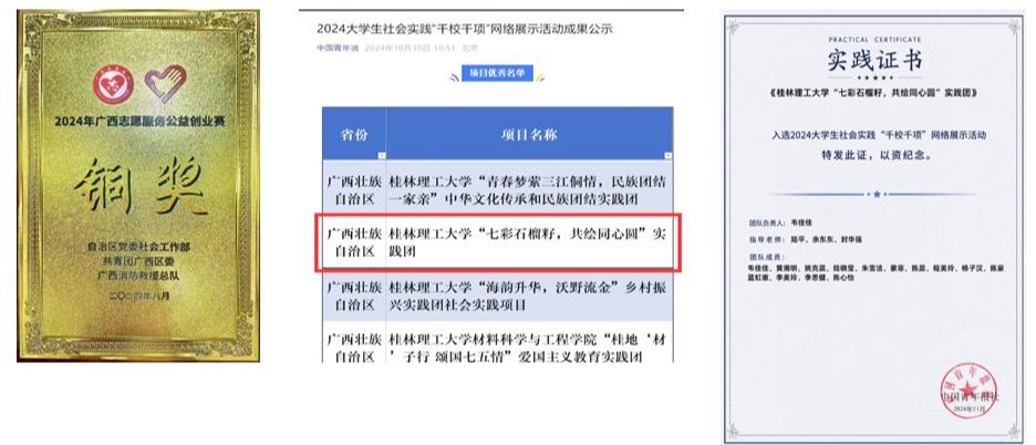 学院充分发挥红色教育优势开展党建特色品牌创建,2023-2025年每年均有2门以上的优质课程入选广西干部网络学院课程,全区在线学习数量累计破百万次;2024年学院“薪火湘传”组织员工作室获校级立项;学院排演的舞台剧《村里来了菩萨兵》被自治区推荐参加中纪委有关赛事评选。学院党委、团委全方位指导2024年社会实践工作各环节,通过指派专家党员深入社会实践团队、全流程新闻宣传指导等具体措施,提升了实践育人活动的社会影响力。学院“青春聚力民族团结 星火闪耀卫国戍边”社会实践团队获社会实践团队国家级立项,“壮美边疆 青春聚力”社会实践团在2024年、2025年连续获批广西专项活动团队,“七彩石榴籽 共绘同心圆”社会实践团队获评大学生社会实践“千校千项”网络展示活动实践项目。